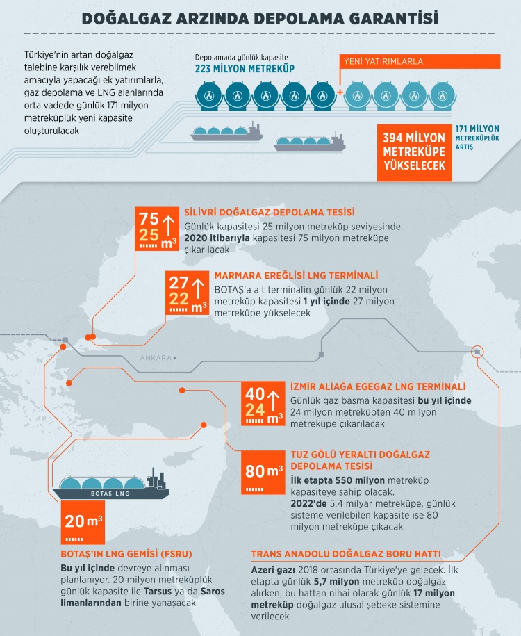 Bu dönemde Tuz Gölü depolama tesisi ve LNG terminallerindeki kapasite genişletme çalışmaları ile ikinci yüzer LNG santralinin devreye alınması artan doğalgaz talebine karşı garanti sağlayabilir.