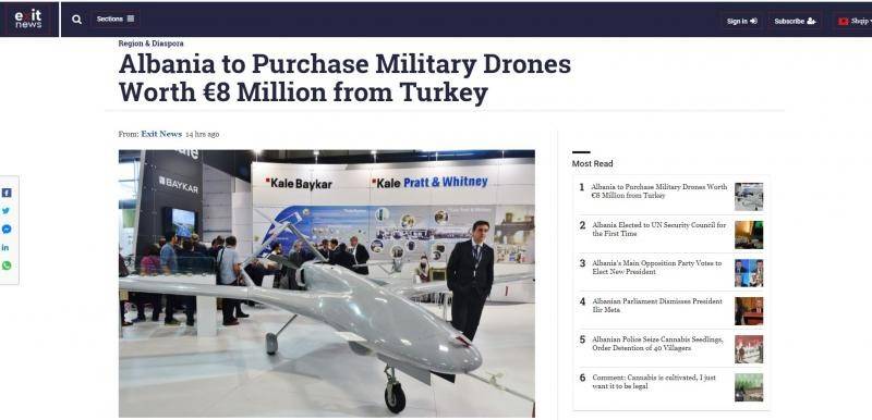Bu zamana kadar pek çok ülkeye ihraç edilen TB-2 SİHA'larının son alıcı Arnavutluk oldu. Arnavutluk basınında çıkan haberlere göre Türk SİHA'larını yakından takip eden Balkan ülkesinin yakın zamanda bir alım gerçekleştirmek için harekete geçeceği ifade edildi. Bunun yanı sıra yayınlanan haber, sitenin en çok okunan haberi oldu.