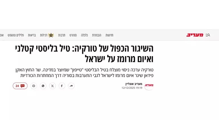 İsrail basınından Maariv “İsrail’e yönelik yeni tehdit: Türkiye ölümcül füzesini sergiledi” başlıklı haberinde “Karadeniz’de Türkiye’nin en uzun menzilli füzesi hedefini başarıyla vurdu. Yerli imkanlarla üretilen bu füze Tel Aviv için yeni bir tehdit anlamına geliyor” ifadelerini kullandı.