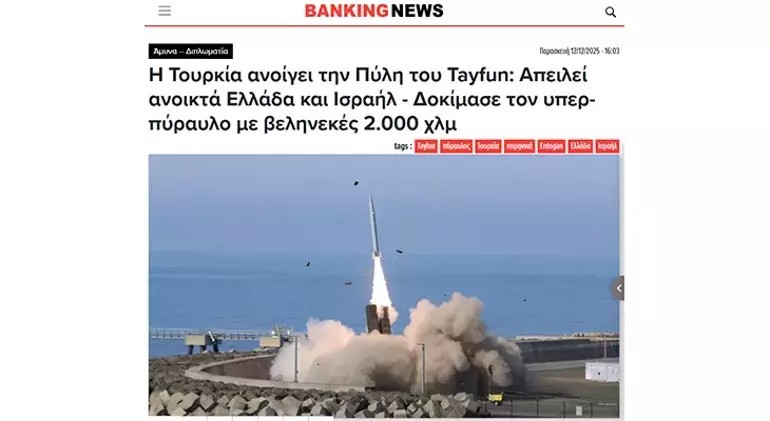 Banking News ise “Türkiye, TAYFUN Kapısı’nı açtı: Yunanistan ve İsrail’i açıkça tehdit ederek 2 bin kilometre menzile kadar çıkabilen süper füzeyi denedi” başlıklı haberinde “Türkiye, tüm Doğu Akdeniz’e sağır edici bir mesaj gönderdi. Menzili yaklaşık 2 bin kilometreyi aşan TAYFUN balistik füzesinin yeni başarılı testi, ilk kez Yunanistan’ın tamamını Evros’tan Girit’e kadar caydırıcılık ve stratejik baskı için tasarlanmış bir silahın menziline sokuyor. Yani Ankara artık sadece bölgesel bir güç değil, balistik üstünlük arayan bir devlet olarak yeni bir döneme giriyor. Türkiye güç oyununu yeni ve tehlikeli bir seviyeye taşıyor” dedi.