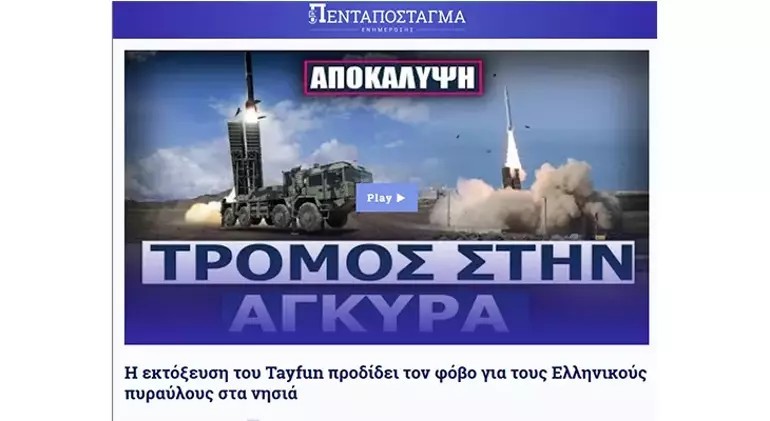 Pentapostagma ise haberinde “Türkiye, özellikle Savunma Bakanı Dendias'ın Ege Denizi'ne füze yerleştirilmesiyle ilgili açıklamalarının ardından, Yunanistan'a karşı bir gözdağı olarak da değerlendirilen bir hamleyle, yerli uzun menzilli balistik füze TAYFUN'un yeni bir testini gerçekleştirdi” değerlendirilmesini yaptı.