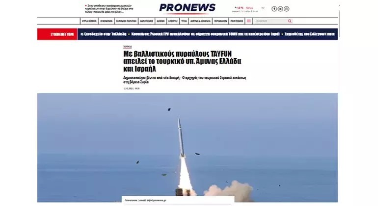 ProNews ise “Türkler, Yunanistan ve İsrail’i TAYFUN'la tehdit etti” başlıklı haberinde “TAYFUN, hipersonik hıza sahip olup son derece hızlı ve ele geçirilmesi son derece zor bir sistemdir. Çeşitli savaş alanlarında kullanılıp başarılı sonuç elde edilmesine imkan tanıyabilir. Ankara’yı askeri gücün ötesinde jeopolitik caydırıcılık seviyesinde de üst noktaya taşıyan bu durum, bölgedeki nüfuzlarını artırmakta hem Yunanistan’ı hem de İsrail’i tehdit etmektedir” ifadesinde bulundu.