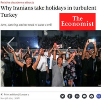 Economist dergisinde "Neden İranlılar, çalkantılı Türkiye'de tatil yapıyor?" haber başlığıyla yayınlanan yazıda, "Bir dizi terör saldırısı, başarısız darbe girişimi ve Cumhurbaşkanı Recep Tayyip Erdoğan'ın hükümetinin devam eden kovuşturmaları nedeniyle Türk turizminin zor günlerden geçtiği" iddia edildi.