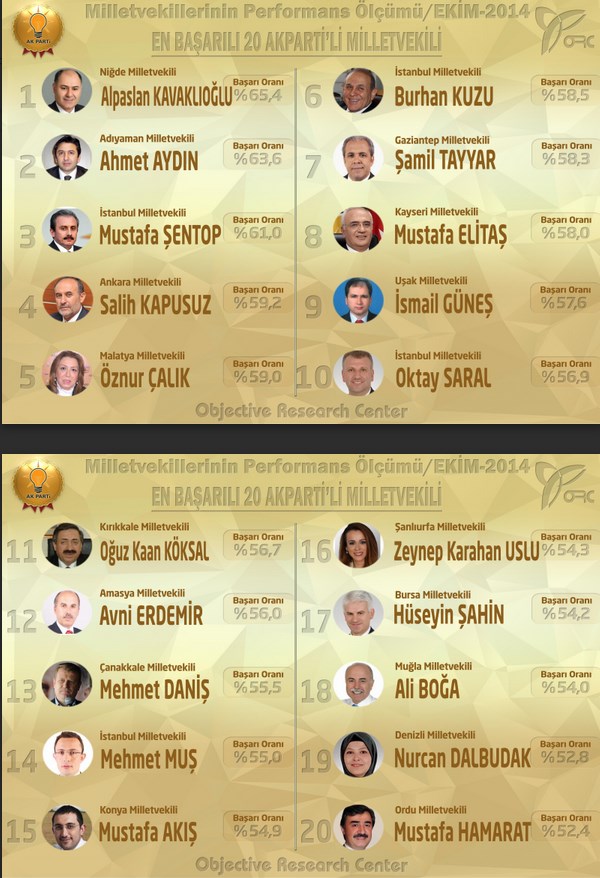 Buna göre, Meclis'teki koltuk sayılarıyla doğru orantılı olarak AK Parti'nin en başarılı 20 milletvekili, CHP'nin en başarılı 10 milletvekili, MHP'ninse en başarılı 6 milletvekili belirlendi.