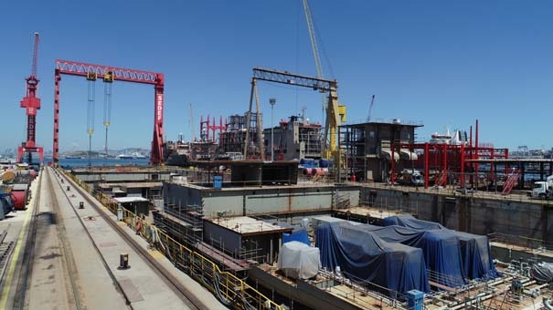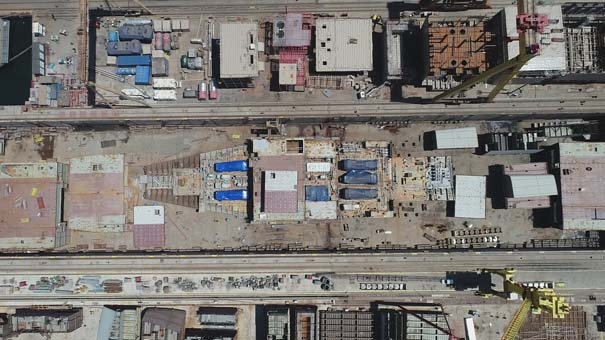 Türkiye’nin gururu olan ilk yerli savaş uçak gemisi Çok Maksatlı Amfibi Hücum Gemisi TCG L400 Anadolu’nun inşası Sedef Tersanesi’nde hızla devam ediyor. Geminin havuzda bloklarının yerleştirilmesi ve çalışmaları (İHA) İhlas Haber Ajansı tarafından havadan görüntülendi.