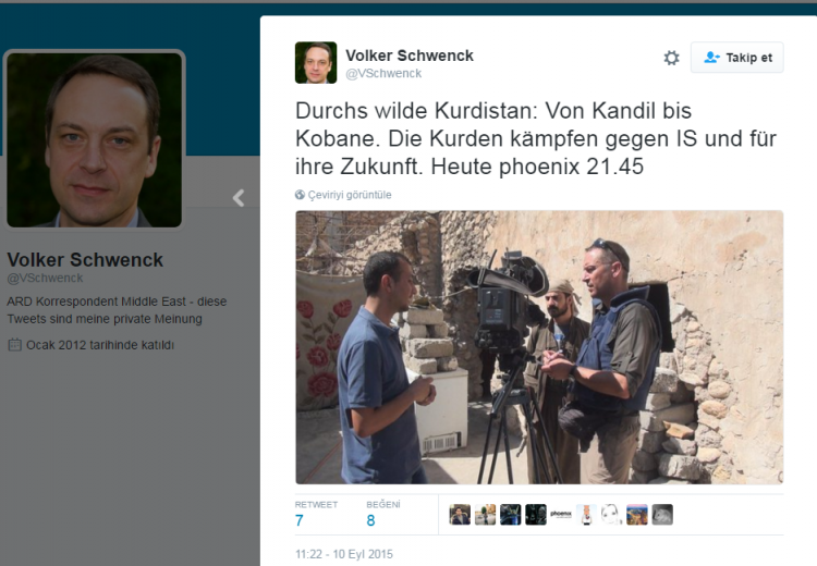 Bununla birlikte Alman gazetecinin twitter mesajlarında da PKK-PYD'yle ilgili paylaşımlar dikkat çekiyor.