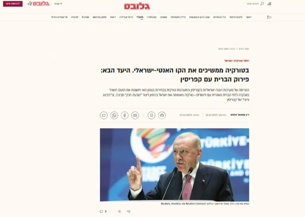Türkiye'nin Gazze ateşkesi sürecindeki etkin rolü ve bölgedeki diplomatik ağırlığını artırması, İsrail basınında yankı buldu. İsrail medyası, Ankara'nın Kıbrıs'taki gelişmelere yönelik artan tepkisini “bölgesel gerilimin yeni cephesi” olarak nitelendirdi. Türkiye'nin üçlü ittifaka karşı tutumu Tel Aviv'de endişe oluşturdu.