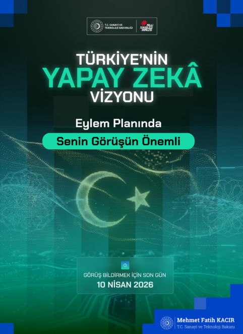 "Tüm vatandaşlarımıza açık olan bu süreçte paylaşacağınız fikirler, ülkemizin yapay zeka alanındaki stratejik önceliklerinin belirlenmesine, fırsatların etkin şekilde değerlendirilmesine ve somut adımların hayata geçirilmesine katkı sunacak. Hedefimiz, Türkiye'yi yapay zeka teknolojilerinde tasarlayan, üreten ve küresel ölçekte rekabet eden, güçlü altyapıya sahip öncü ülkelerden biri haline getirmek. Görüş ve öneriler, 10 Nisan'a kadar, 'yapayzekavizyonu.sanayi.gov.tr' adresi üzerinden iletilebilecek."