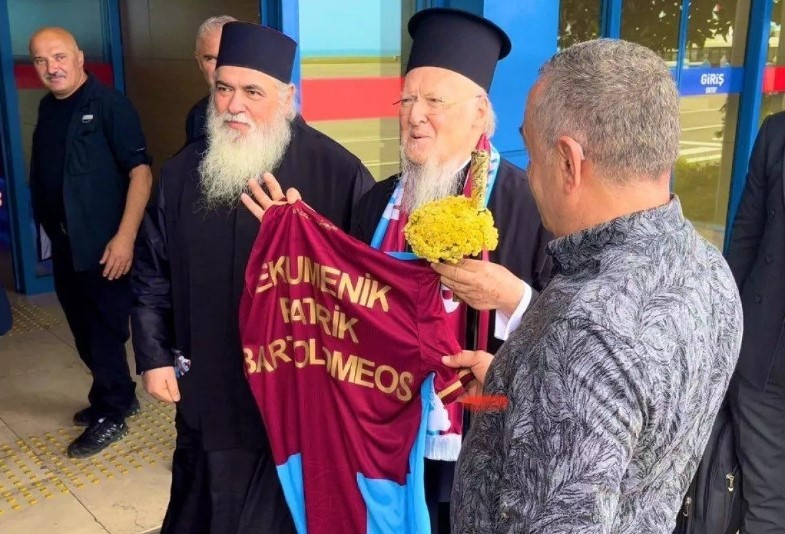 Maçka'da Sümela Manastırı'nda yarın 9.'su düzenlenecek ayini yönetmek için Trabzon'a giden Fener Rum Patriği Bartholomeos'a arkasında "Ekümenik Patrik Bartholomeos" yazılı bir forma hediye edilmesi tartışma yarattı.