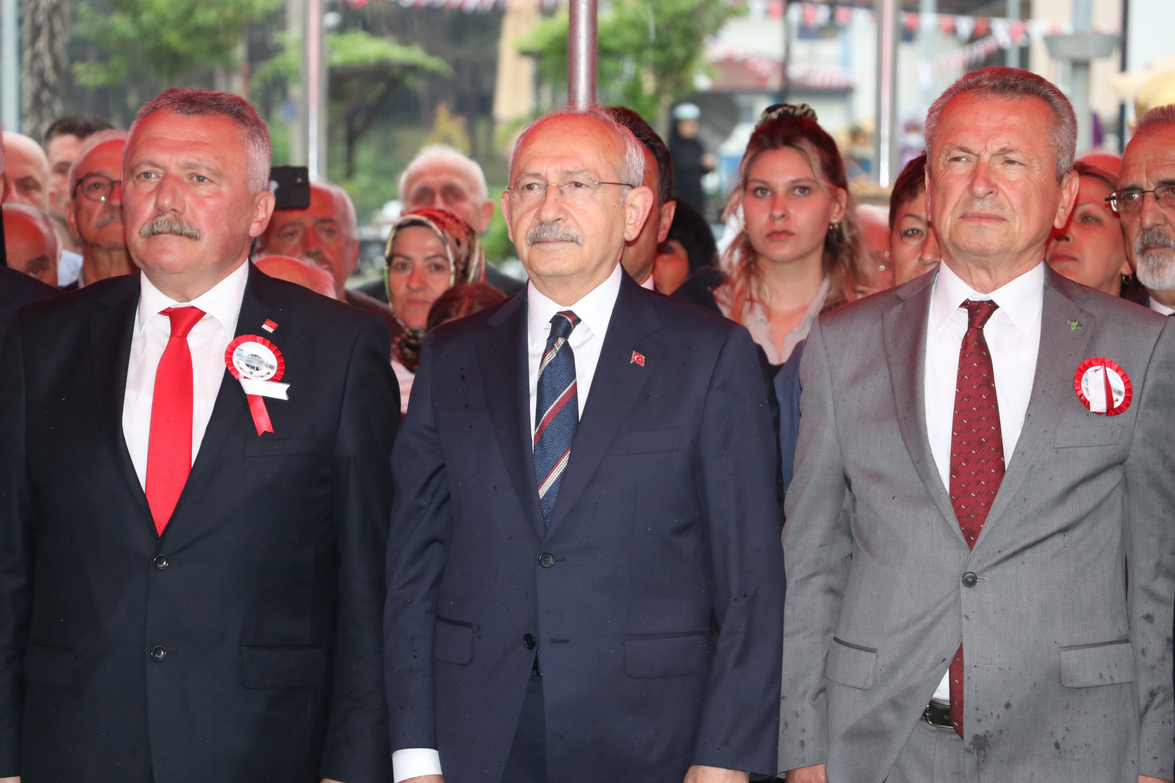 CHP Genel Başkanı Kemal Kılıçdaroğlu, konuşmalarının ardından aracına yönelirken bir bebeği sevdi. Ardından vatandaşlarla görüşerek aracına binerek ilçeden ayrıldı.
