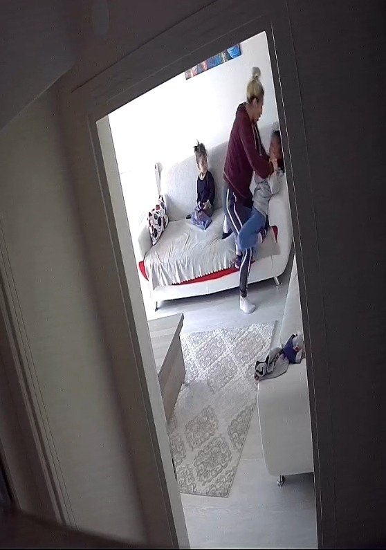 Sivas'ta 2 ve 7 yaşındaki çocuklarını acımasızca döven annenin şiddet görüntüleri, boşandığı eşi tarafından eve yerleştirilen güvenlik kamerası sayesinde ortaya çıktı.