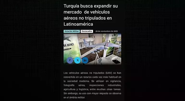 Analizde, Türk SİHA'larının küresel pazarda elde ettiği tarihi başarıyı vurgulanarak “Türkiye'nin yeni hedefi, gözetim ve iç güvenlik ihtiyacı yüksek olan Latin Amerika pazarı. Yakında Türkler burayı da fethedecek” denildi.