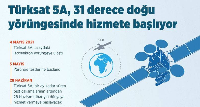 Türksat 5A uydusu ne işe yarar? Ocak ayı başında başarıyla fırlatılan Türksat 5A haberleşme uydusunun yörünge yolculuğuna devam ettiği bilgisini veren Karaismailoğlu, şunları kaydetti: "4 Mayıs itibarıyla uzaydaki jeosenkron yörüngeye ulaşan, 5 Mayıs'ta yörünge testlerine başlanan Türksat 5A'nın test çalışmaları başarıyla tamamlandı. Uydumuz, 28 Haziran'da Cumhurbaşkanımız Recep Tayyip Erdoğan'ın da katılımıyla Türksat AŞ'nin Gölbaşı yerleşkesinde düzenlenecek törenle dünyaya hizmet vermeye başlayacak. Haberleşme uydumuz hizmete girdiğinde, Türkiye ile Avrupa, Orta Doğu, Kuzey Afrika, Orta-Batı ve Güney Afrika'nın yanı sıra Akdeniz, Ege ve Karadeniz'i kapsama altına alacak."