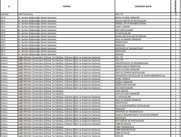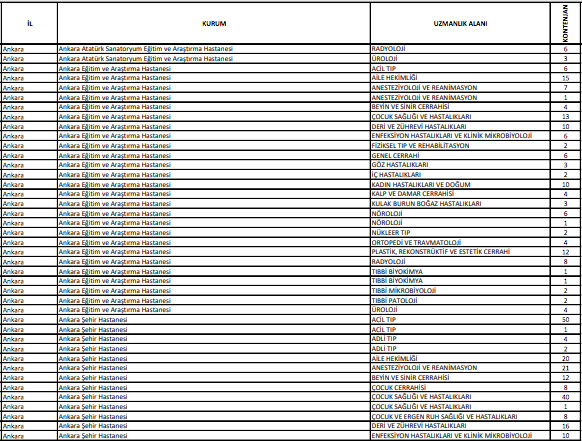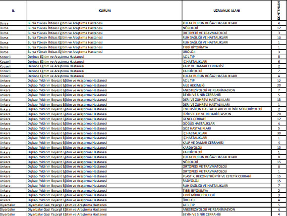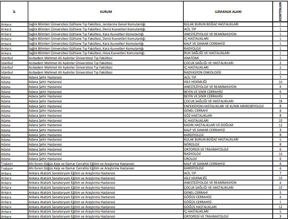 2022 TUS 1. dönem uzmanlık öğrencisi kontenjanları listesi için tıklayın
