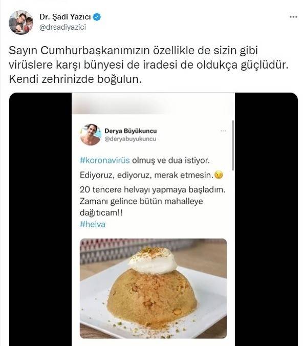 Tuzla Belediye Başkanı Şadi Yazıcı, bu paylaşımı yapan vatandaşları sert sözlerle eleştirdi. Başkan Yazıcı, bu paylaşımlardan oluşan bir video paylaşarak, “Sayın Cumhurbaşkanımızın özellikle de sizin gibi virüslere karşı bünyesi de iradesi de oldukça güçlüdür. Kendi zehrinizde boğulun” ifadelerini kullandı.