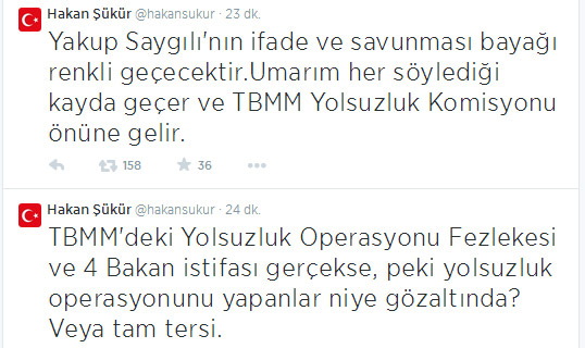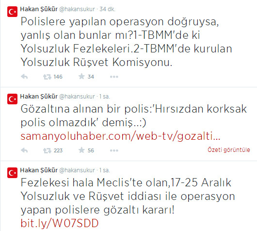 17 Aralık darbe operasyonunu yöneten 40'a yakın Mali Suçlar polisi gözaltına alınınca Tuzluk vekil Hakan Şükür Twitter'a sarıldı.