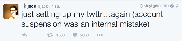 Jack Dorsey'i (@jack) takip etmek isteyen kullanıcılar "Görüntülemeye çalıştığınız hesap askıya alındı" hatası ile karşılaştı. CEO bu hatanın ortaya çıkmasından sonra hemen Tweet atarak sorunun neden kaynaklandığını açıkladı.