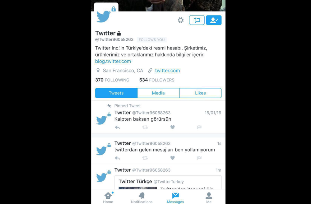 Gelen mesajda Twitter bağlantısı olduğu görülüyor fakat aslında öyle değil. Bu elbette basit bir tuzak. Kaldı ki hesabınız kilitlenmiş olsa bile size DM olarak gönderilmez, mail veya SMS olarak bilgi sağlanır. Virüs bulaşan hesaplar şu şekilde görünüyor: