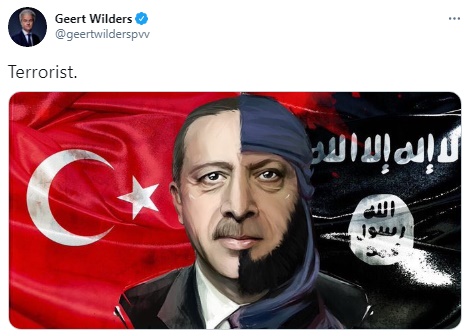 Türkiye ve İslam düşmanı Hollandalı ırkçı vekil Geert Wilders Cumhurbaşkanı Erdoğan'ı alçakça hedef aldı. Skandala "özgürlük" kılıfı giydiren ABD'li sosyal medya platformu Twitter ise paylaşıma yönelik gelen tepkilere rağmen söz konusu içeriği sitesinden kaldırmadı. Twitter daha önce Devlet Bahçeli ve İçişleri Bakanı Süleyman Soylu'nun Boğaziçi Üniversitesi'ndeki provokasyona karşı uyarılarını site kurallarını ihlal ettiği bahanesiyle sansürlemişti.