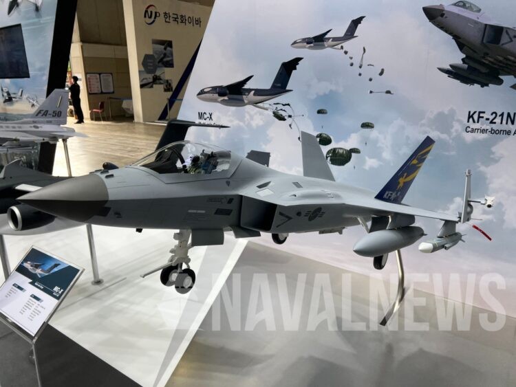 Güney Kore Havacılık ve Uzay Sanayi şirketi KAI, DX Korea 2022 Fuarında KF-21 savaş uçağının uçak gemilerinden iniş kalkış yapabilen KF-21N versiyonunu tanıttı.