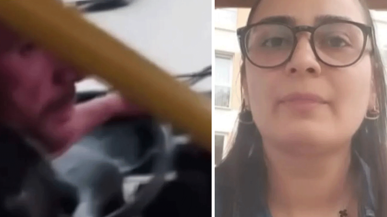 Görüntülerde sürücünün de "Sayın yolcularım, kusura bakmayın. Elim, ayağım titriyor şu anda. Bu hanımefendi beni rahatsız ediyor. Yoluma devam edemiyorum. Sizi bir sonraki arabaya vereceğim" şeklinde cevap verdiği görüldü.