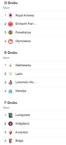 D Grubu'nda yer alan Fenerbahçe ise deplasmanda Almanya temsilcisi Eintracht Frankfurt ile karşılaşacak. Eintracht Frankfurt - Fenerbahçe maçı 16 Eylül Perşembe günü 22.00’da oynanacak.