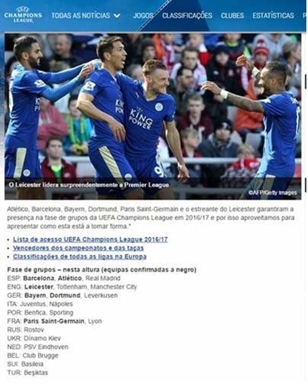 İngiltere'den Leicester City, İspanya'dan Barcelona ve Atletico Madrid, Almanya'dan Bayern Münih ve Bourssia Dortmund ve Fransa'dan Paris Saint Germain gibi takımların şimdiden Devler Ligi'nde gruplara katılmayı garantiledikleri bildirilirken, bunları takip etmesi muhtemel takımlar da ülkelerine göre şöyle sıralandı: