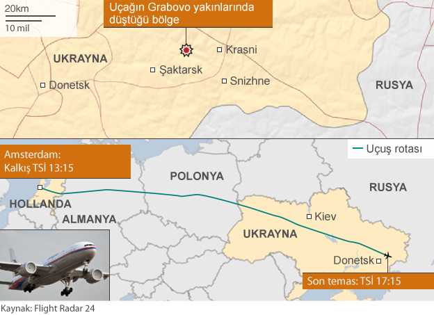 Malezya Havayolları'na ait MH17 sefer sayılı uçakla irtibat kesildiğinde, uçak aylardır çatışmaların yaşandığı Ukrayna'nın doğusundan Rusya hava sınırına girmek üzereydi.