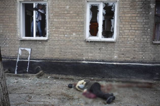 Ukrayna'da yaşanan iç savaşa halk o kadar alıştı ki yolda yatan cesetlere rağmen insanlar normal yaşantılarına devam ediyor.
