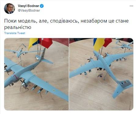 Ukrayna Hava Kuvvetleri armalı AKINCI TİHA maketinin görüntüsünü sosyal medya hesabından paylaşan Ukrayna'nın Ankara Büyükelçisi Vasyl Bodnar, "Şimdilik model, ama umarım yakında gerçek olur" dedi.