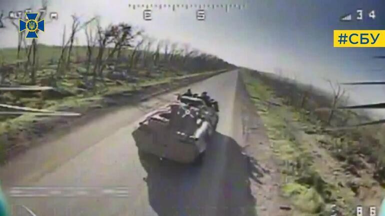 Ukrayna Güvenlik Servisi, intihar İHA’larıyla Rus askeri araçlarının vurulduğu anlara ilişkin görüntüleri yayınladı.