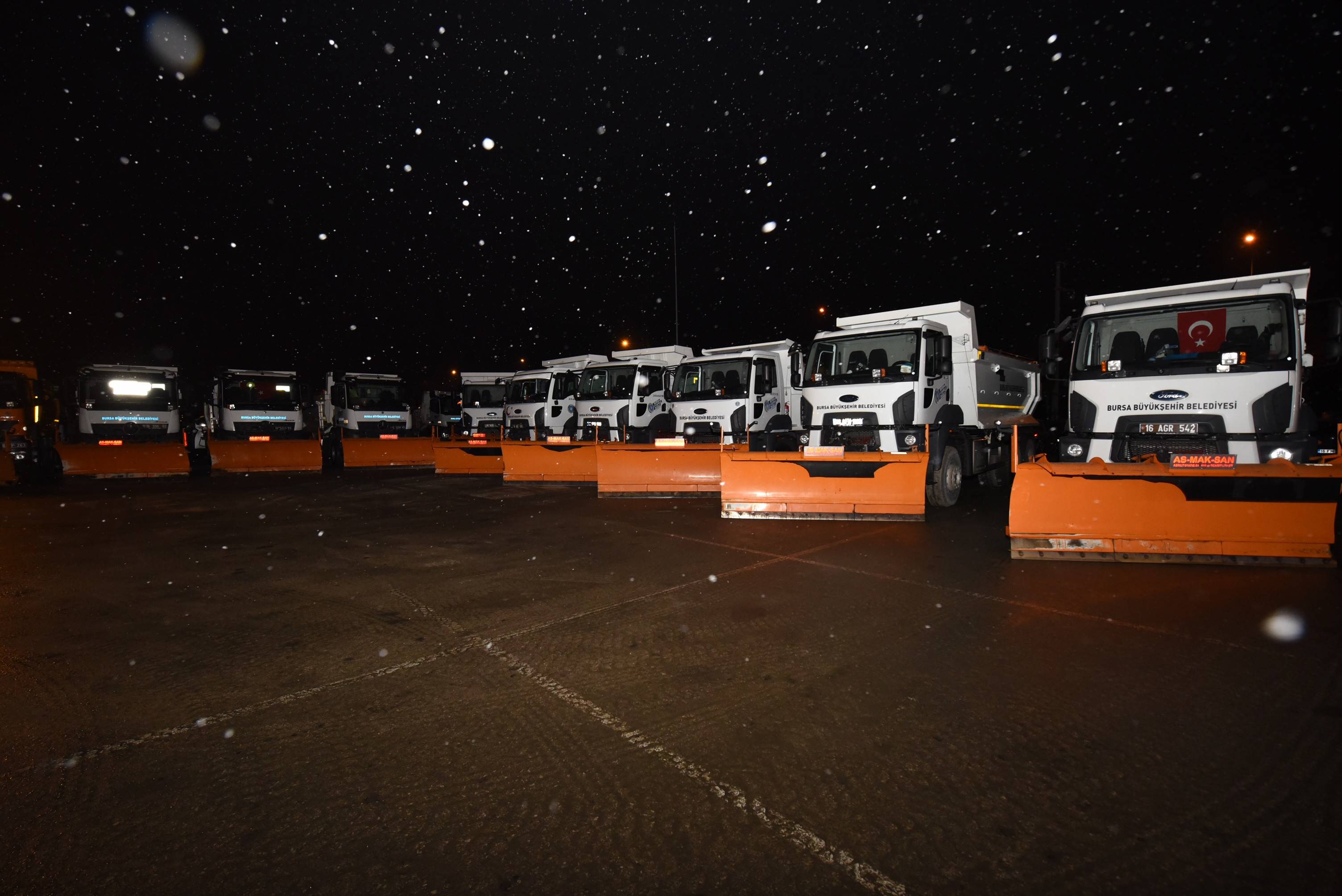 Büyükşehir Belediyesi Ulaşım Daire Başkanlığı Yol İşleri Şube Müdürlüğü ekipleri, kar yağışının ulaşımda aksamaya yol açmaması için 17 ilçede başlattığı karla mücadele seferberliğini kesintisiz sürdürüyor. Toplam 283 iş makinası ve kamyon ile 834 personelden 100 ayrı ekip oluşturan Büyükşehir Belediyesi, yol açma çalışmalarına 24 saat boyunca devam ediyor. Özellikle İstanbul’da kar nedeniyle belli saatlerde özel araçlarla trafiğe çıkmaya kısıtlama bile getirilirken, Büyükşehir Belediyesi’nin gayretli çalışmalarıyla Bursa’da hayat normal seyrinde devam etti. Bu süreçte sergilenen karla mücadele performansı ile Bursa örnek kent olarak gösterilirken; Büyükşehir Belediye Başkanı Alinur Aktaş da gece saat 12’de yol işleri şantiyesini ziyaret edip, günlerdir insanüstü gayret gösteren personelle bir araya geldi.