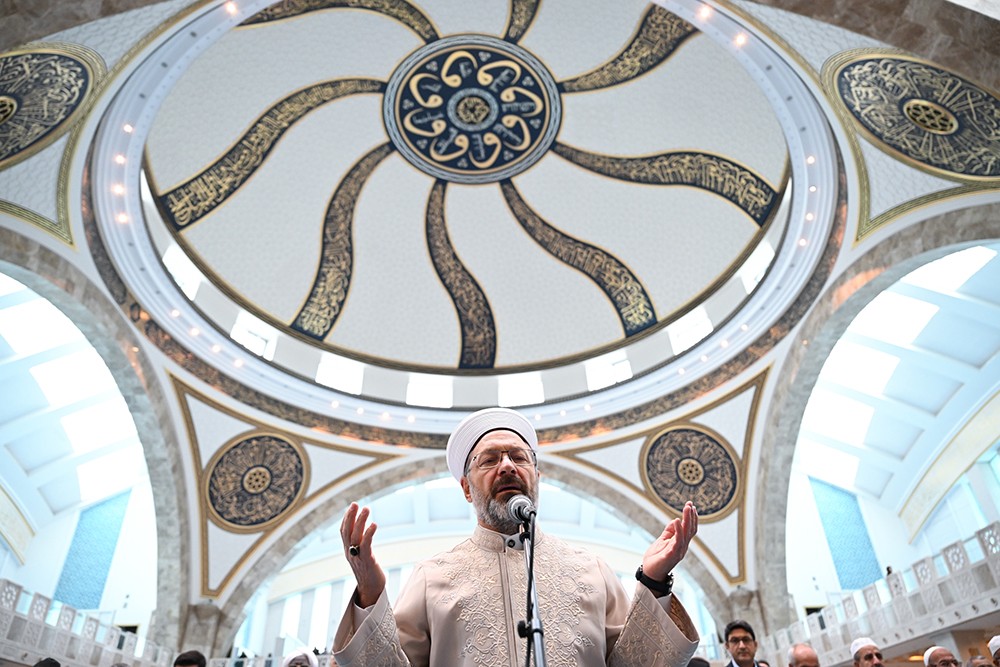 Namaz öncesinde Filistin'deki zulme dikkat çeken Başkan Erbaş, Filistin halkı için dua etti.