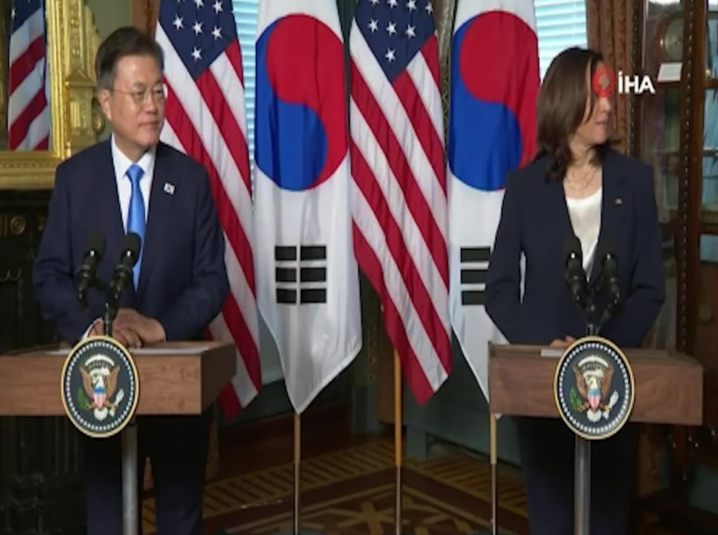 ABD Başkan Yardımcısı Kamala Harris, geçtiğimiz cuma günü Güney Kore Devlet Başkanı Moon Jae-in ile ortak basın toplantısı düzenlemişti.