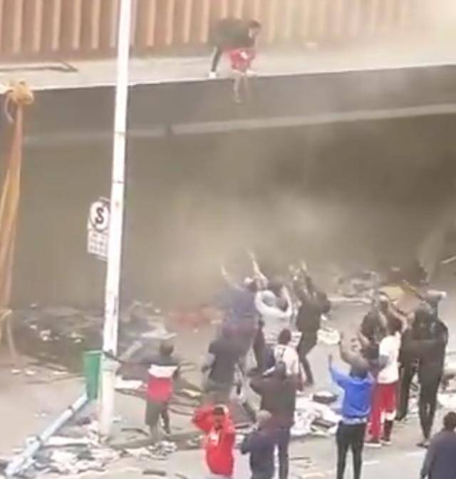 Durban’da bulunan bir binanın zemin katında yer alan dükkanlarda yağmacıların hedefi olurken, yağmanın ardından bina ateşe verildi. Ateşe verilen binanın 16’ncı katında bulunan Naledi Manyoni isimli anne dumanları görünce 2 yaşındaki bebeğini de alarak hızla binadan çıkma istedi.