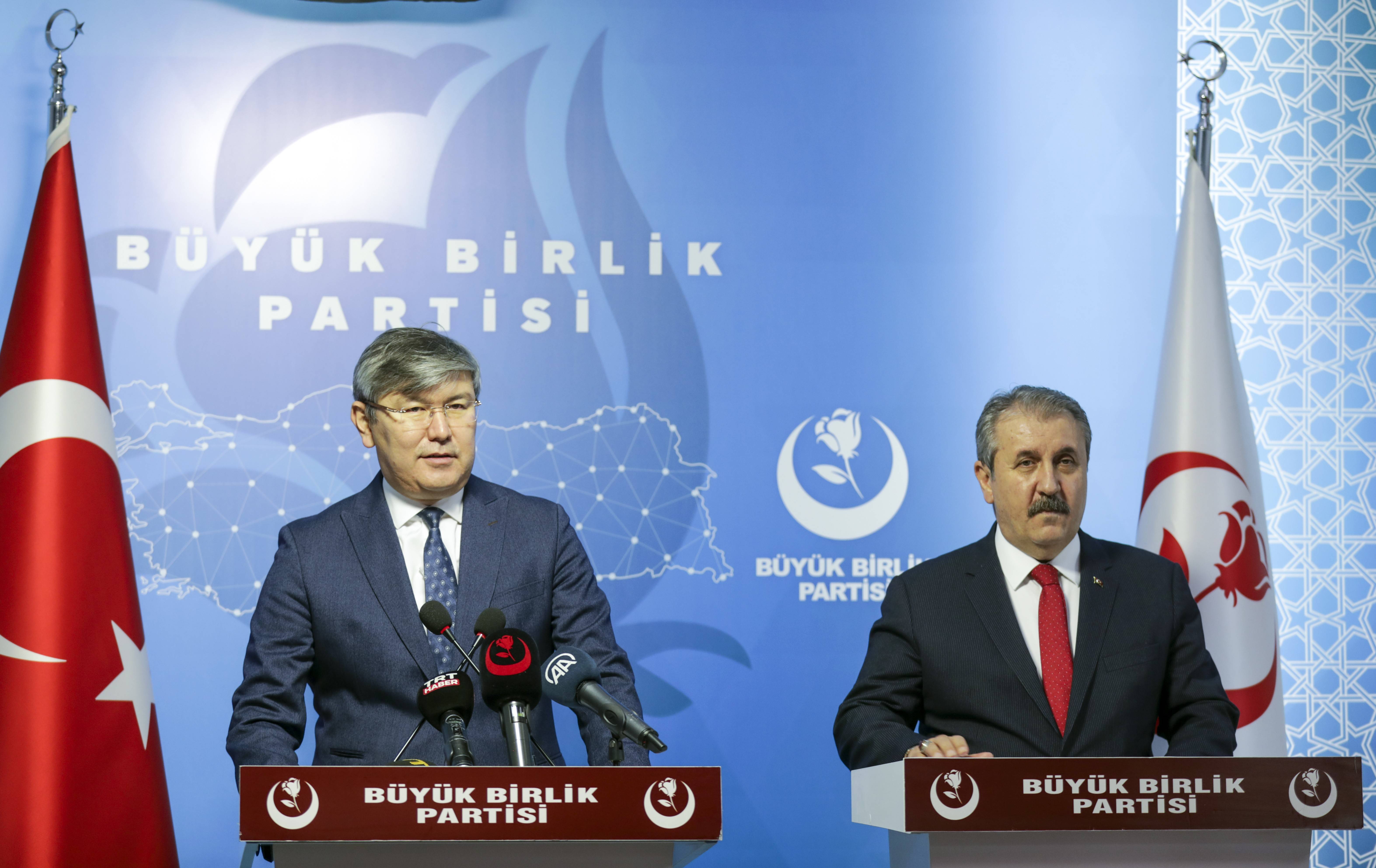 Büyük Birlik Partisi (BBP) Genel Başkanı Mustafa Destici, Kazakistan'ın Ankara Büyükelçisi Abzal Saparbekuly ile bir araya geldi. Saparbekuly, burada yaptığı konuşmada, "Dün TBMM'deki siyasi partilerin, Kazakistan halkı, devleti ve Cumhurbaşkanı Kasım Cömert Tokayev'in yeni dönem reformlarına olan desteklerini de gördük. Bu açıdan, kardeş Türkiye devletinin ve halkının bizim yanımızda olmasından dolayı müteşekkiriz. Bu gösterdi ki bu tip krizlere karşı her zaman hazırlıklı olmalıyız." dedi.