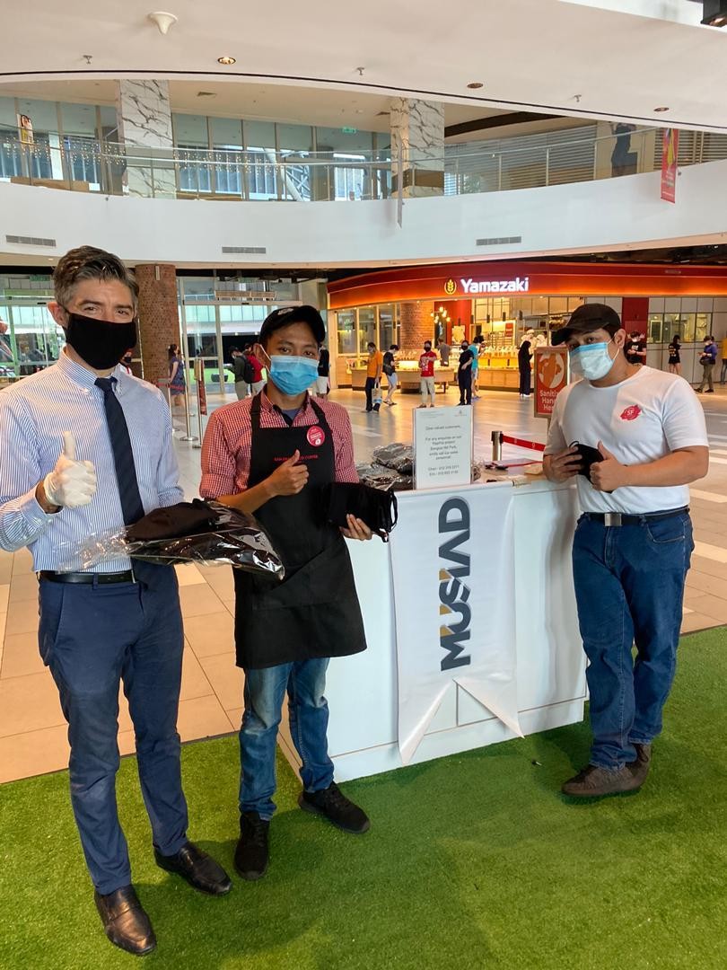 MÜSİAD Malezya üyeleri, başkent Kuala Lumpur'daki bir alışveriş merkezinde temel ihtiyaçlarını karşılamak için alışveriş yapan halka bedava maske verdi. Kurulan stanttan maskelerini alanlar, MÜSİAD üyelerine teşekkür ederek evlerine döndü.