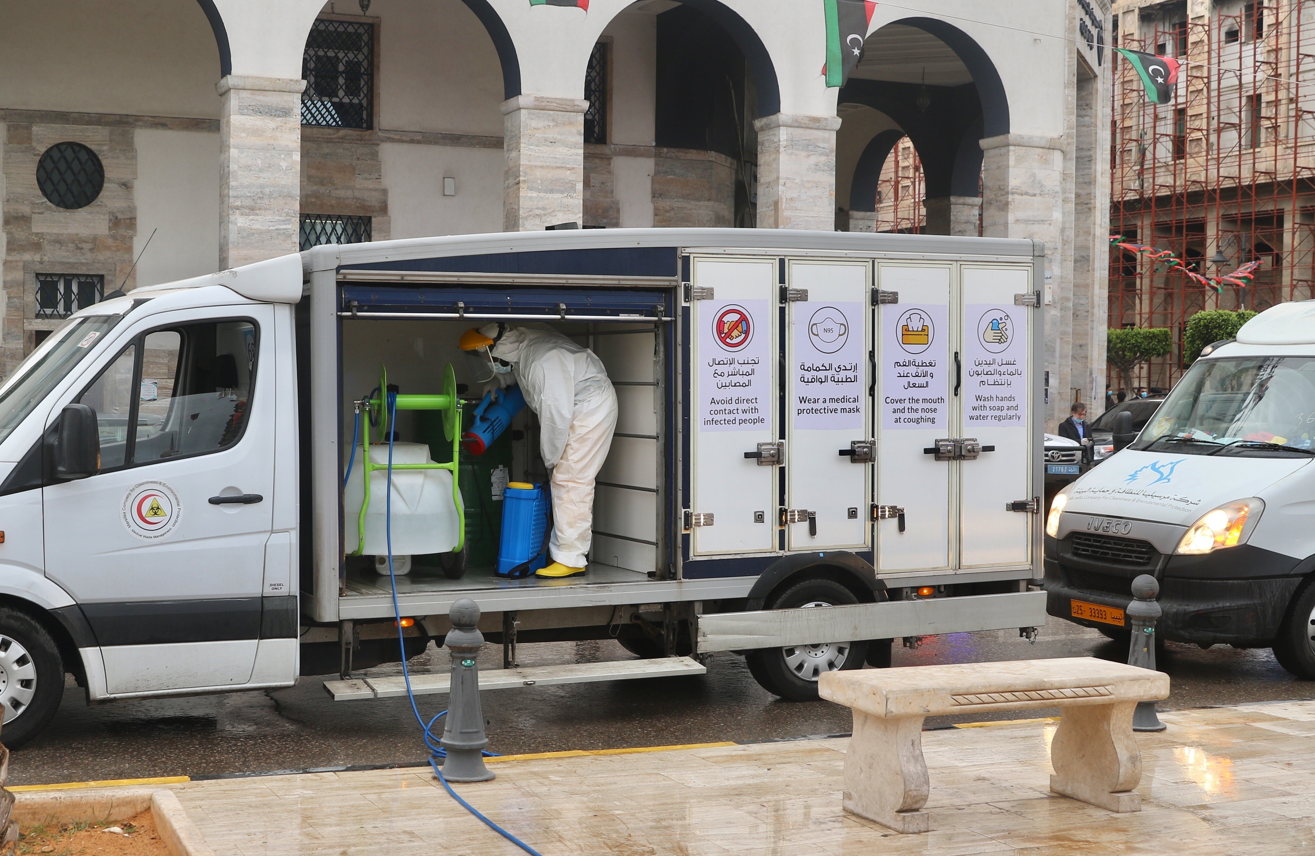 Başağa, basın toplantısının ardından başkent Trablus'ta 17 Şubat devriminin simgesi haline gelen Şehitler Meydanı'nda koronavirüs ile mücadele ekiplerinin çalışmalarını da denetledi.