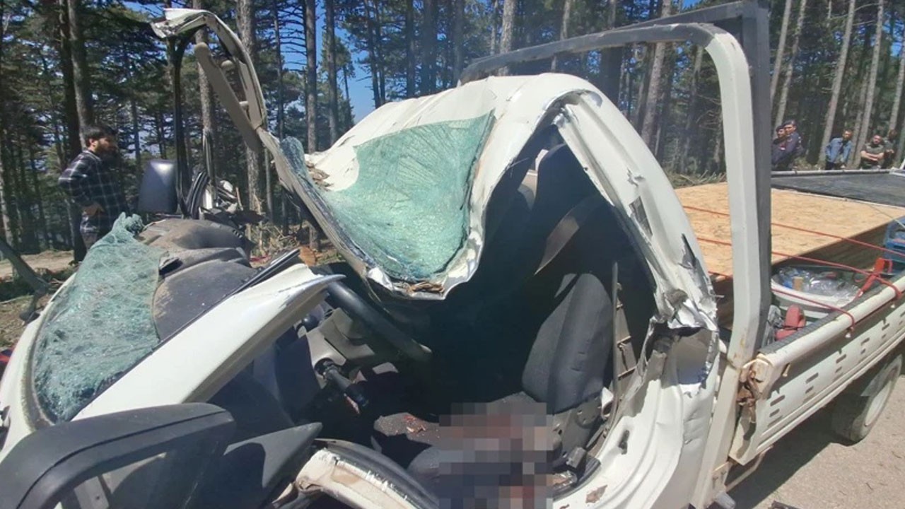 Bursa'da Uludağ Yolu Soğukpınar mevkisinde seyreden bir kamyonetin üzerine kesilen ağaç devrildi. Kamyonetin kabin kısmı hurdaya dönerken sürücü hayatını kaybetti, yanındaki iki ise yaralandı.
