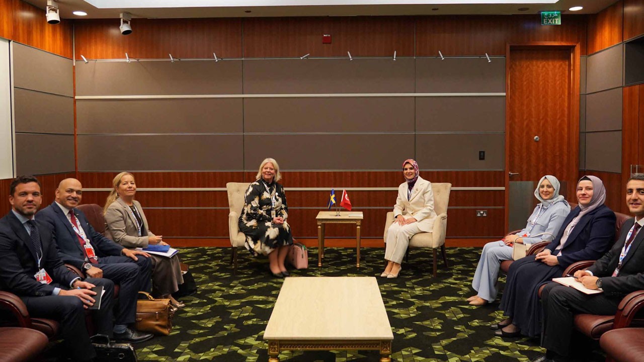 Katar’ın başkenti Doha’da gerçekleştirilen 2’nci Dünya Sosyal Kalkınma Zirvesine katılan Aile ve Sosyal Hizmetler Bakanı Mahinur Özdemir Göktaş uluslararası temaslarda bulundu. Göktaş, 2’nci Dünya Sosyal Kalkınma Zirvesi kapsamında Sierra Leone, İsveç, Singapur’un aileden sorumlu bakanlarıyla bir araya geldi. Bakan Göktaş, Sierra Leone Sosyal Refah Bakanı Melrose Karminty, İsveç Sosyal Hizmetler Bakanı Camilla Waltersson Grönvall ve Singapur Cumhuriyeti Toplumsal ve Aile Gelişim Bakanı Masagos Zulkifli ile kadın, çocuk, aile ve sosyal politikalar konularında görüş alışverişinde bulundu.