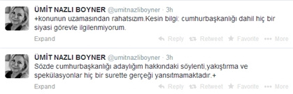 Ağustos'taki Köşk seçimleri öncesinde bir çok kuliste çeşitli adayların ismi zikrediliyordu. Bu isimlerden birisi de Ümit Nazlı Boyner'di. CHP Genel Başkanı Kılıçdaroğlu'na bir kaç kanaldan Ümit Boyner'in isminin gittiği iddia edilmişti.