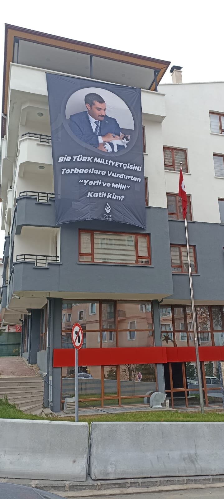 Ülkü Ocakları eski Genel Başkanı Sinan Ateş cinayetine ilişkin çirkin bir pankart hazırlatan Zafer Partisi Genel Başkanı Ümit Özdağ, hazırladığı pankartı partisinin il başkanlığı binalarına astırttı.