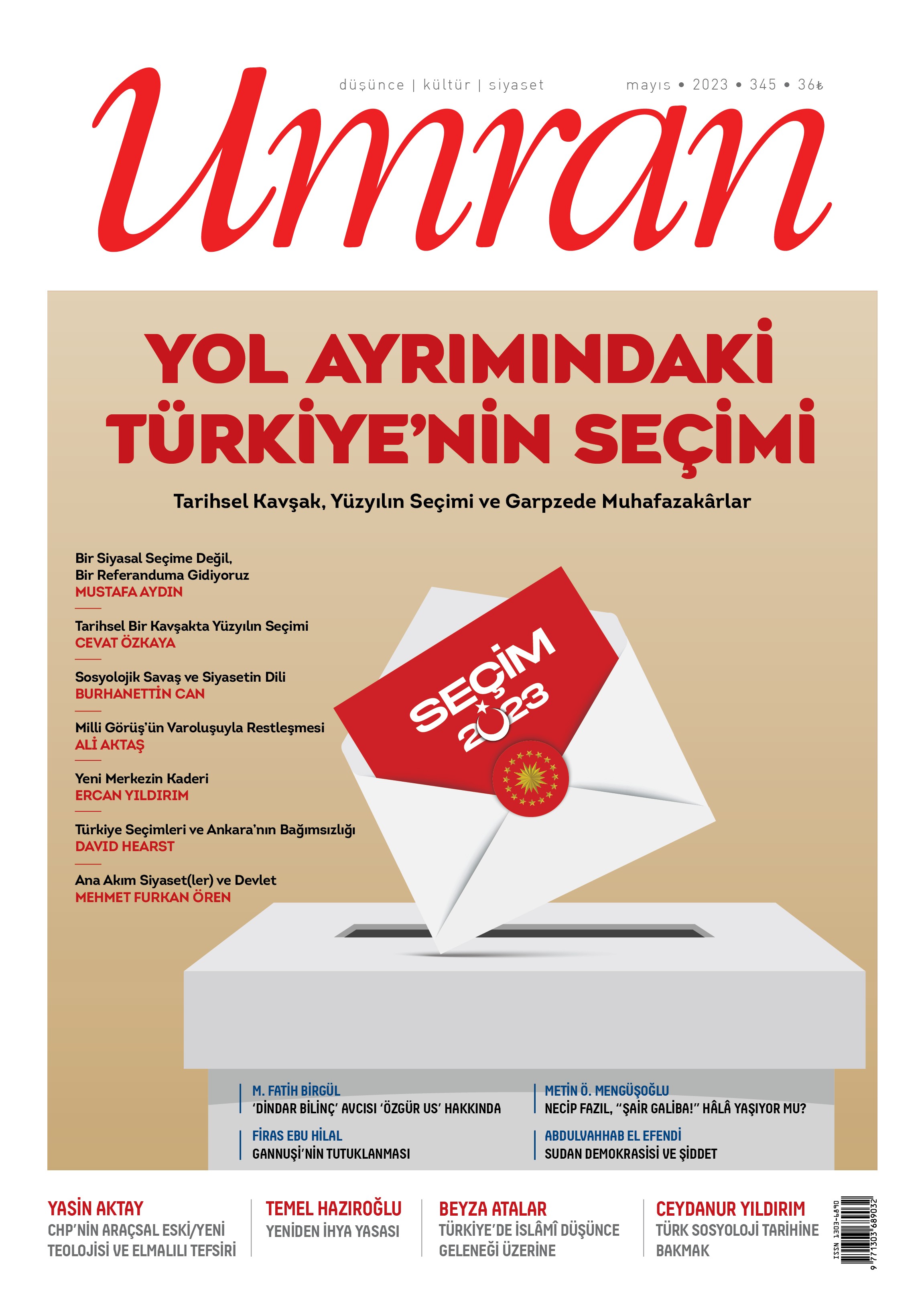 Umran dergisi Mayıs 2023 tarihli 345. sayısında 14 Mayıs 2023’yeki çifte seçimleri ele alan “Yol Ayrımındaki Türkiye’nin Seçimi” konulu manşetle çıktı.
