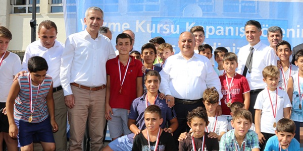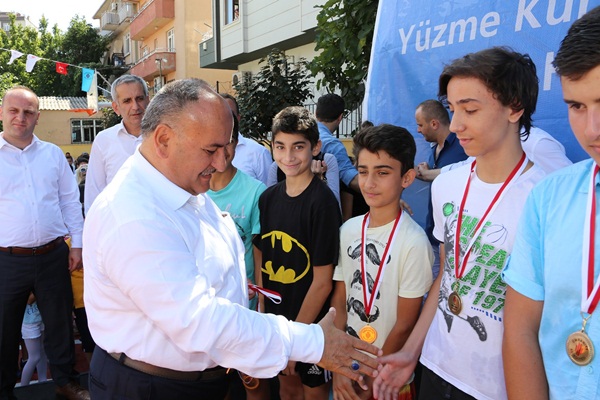 Ümraniye Belediyesi her yıl geleneksel olarak düzenlenen Yaz Spor Okulları kapsamında, bu yıl ilk kez 15 okulun bahçesine portatif olimpik yüzme havuzu ve aqupark kurarak, çocukların tatili daha da eğlenceli geçirmesini sağladı. Profesyonel yüzme hocaları eşliğinde, 7-14 yaş grubu çocuk ve gençlerin ücretsiz olarak yararlandığı Yüzme Kursları’nın kapanış törenleri Yamanevler Ortaokulu ve Pınarbaşı İlköğretim Okulu’nda yoğun katılım ile gerçekleştirildi. Düzenlenen törenlere; Ümraniye Belediye Başkanı Hasan Can’ın yanı sıra, Ümraniye Kaymakamı Suat Dervişoğlu, AK Parti Ümraniye İlçe Başkan Yardımcıları, İlçe Gençlik Hizmetleri ve Spor Müdürü Muhammet Kılıç,AK Parti Ümraniye Kadın Kolları Başkanı Mukaddes Bilgin, Belediye Başkan Yardımcıları Mesut Özdemir, Maliki Ejder Batur, belediye birim müdürleri, kurs öğretmenleri, öğrencileri ve öğrenci velileri katıldı. Başkan Hasan Can’ın yüzme yarışmasının startını vermesi ile başlayan program, 6 hafta boyunca süren yüzme kurslarının tanıtım videosu ile devam etti.