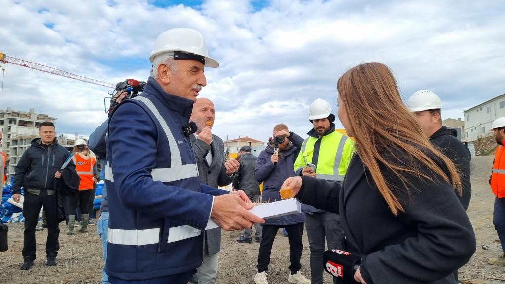 Şantiye gezisinin sonunda Başkan İsmet Yıldırım, inşaatın çalışanları teşekkür ederek, tatlı ikram etti.