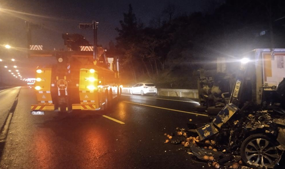 Olay, 03.30 sıralarında TEM Otoyolu Ümraniye mevkii Ankara istikametinde meydana geldi. Edinilen bilgiye göre seyir halindeki 06 EVC 454 plakalı otomobil sürücüsünün direksiyon hakimiyetini kaybetmesiyle aynı yönde seyreden 34 BY 2686 plakalı meyve sebze yüklü kamyonete çarptı.