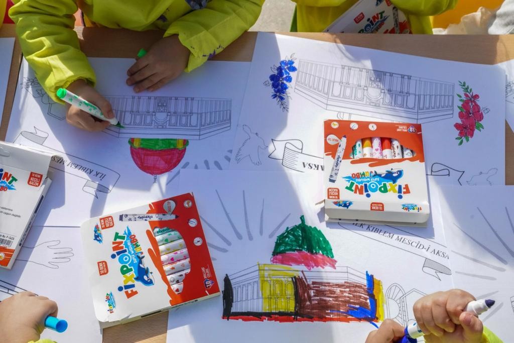 Filistin’de yaşanan savaş tüm şiddetiyle sürerken, dünyanın dört bir yanında olduğu gibi Ümraniye’de de Filistin'e destek için düzenlenen protestolar ve etkinlikler devam ediyor. Ümraniye Belediyesi ev sahipliğinde düzenlenen, ilçe müftülüğüne bağlı 4-6 yaş grubu Kur’an kurslarında eğitim gören öğrenciler, ellerine aldıkları fırça ile boyama yaparak, Filistin’de şehit olan akranları için farkındalık oluşturdu.
