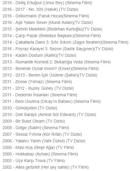Ünal Silver'in rol aldığı filmler