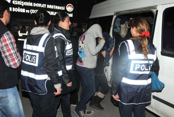 Gözaltına alınanlardan 8 kadın herhangi bir bulaşıcı hastalıklarının olup olmadıklarının belirlenmesi için polisler tarafından Eskişehir Devlet Hastanesi'ne götürülerek burada sağlık kontrolünden geçirildi.