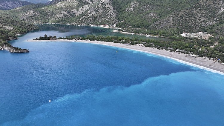 Muğla'nın Fethiye ilçesindeki dünyaca ünlü Ölüdeniz'in bir kısmı turkuaz renk aldı.